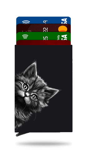 Our slim, minimalist wallet offers space for 1-8 credit cards, which effortlessly pop up with a push of the tab at the bottom, combining a compact, sleek design with practicality.